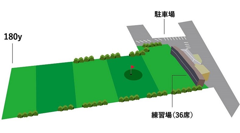 奥行き180ヤードのフェアウェイ。ターゲットグリーンを配置しアプローチ練習も可能です。